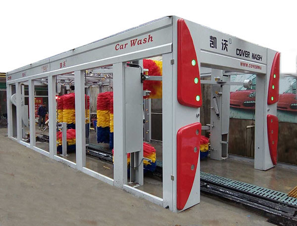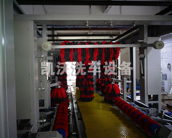 凱沃隧道連續(xù)式電腦洗車機(jī)主要用于轎車、越野車、小型面包車、箱式等車輛的外表進(jìn)行高壓水沖洗、清洗劑洗、刷洗、蠟洗、風(fēng)干和拋光作業(yè)。當(dāng)車輛被輸送機(jī)送入洗車房后,首先由擺動(dòng)式高壓水刀完全沖掉附于車體上的微小砂礫及灰塵;再經(jīng)噴淋發(fā)泡清洗液和多組洗車機(jī)專用刷滾對車輛表面及輪轂作多角度包裹清洗;經(jīng)高壓風(fēng)干后,再由三組特柔拋光刷作擦拭,使汽車表面更加光亮如新。