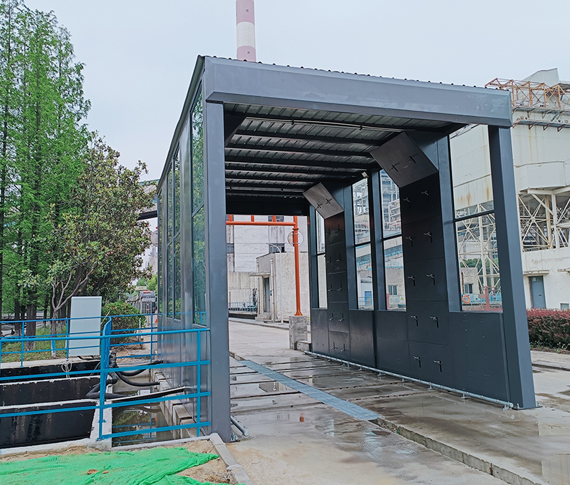 2、車輛緩慢向前移動(dòng),進(jìn)入循環(huán)水沖洗平臺(tái)區(qū)域,高壓水噴嘴對(duì)車輛輪胎、底盤、兩側(cè)、進(jìn)行徹底清洗。沖洗時(shí)間一般40~120s,根據(jù)實(shí)際沖洗效果控制車輛行駛速度來控制沖洗時(shí)間。